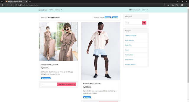 Genicine merupakan Toko Online yang memberikan fashion terkini ke kamu dengan harga yang terjangkau. Pencarian produk dalam Toko Online Genicine sangat mudah dengan fitur pengelompokkan terhadap kategori dan fitur search. Toko Online Genicine juga memberikan fitur pengurutan berdasarkan harga untuk memberikan list terurut dari murah ke mahal atau sebaliknya.